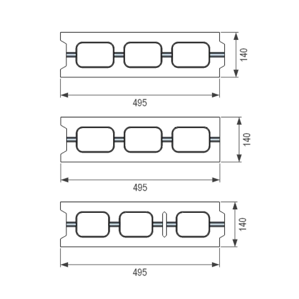Stoneroc 140 dobtie bloki – nesošo, nenesošo sienu un pamatu izbūvei. Piemēroti nesošo sienu izbūvei ēkās līdz 3-stāviem. Bloku dobumi ļauj vienkārši ievilkt elektroinstalācijas un citas komunikācijas. Pateicoties nelielajam mūrjavas patēriņam, montāža ir ātra un izdevīga.