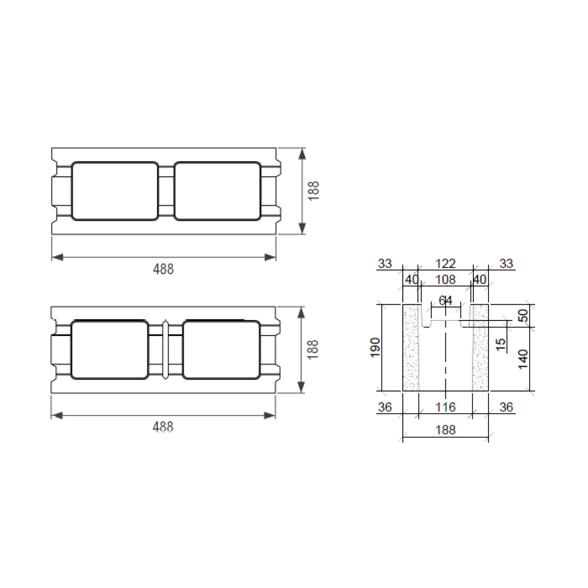 - Kvalitatīvu pildījumu: Speciālā forma novērš gaisa kabatu veidošanos, radot blīvu un akustiski izolējošu sienas kodolu.