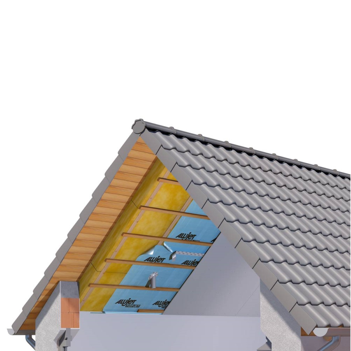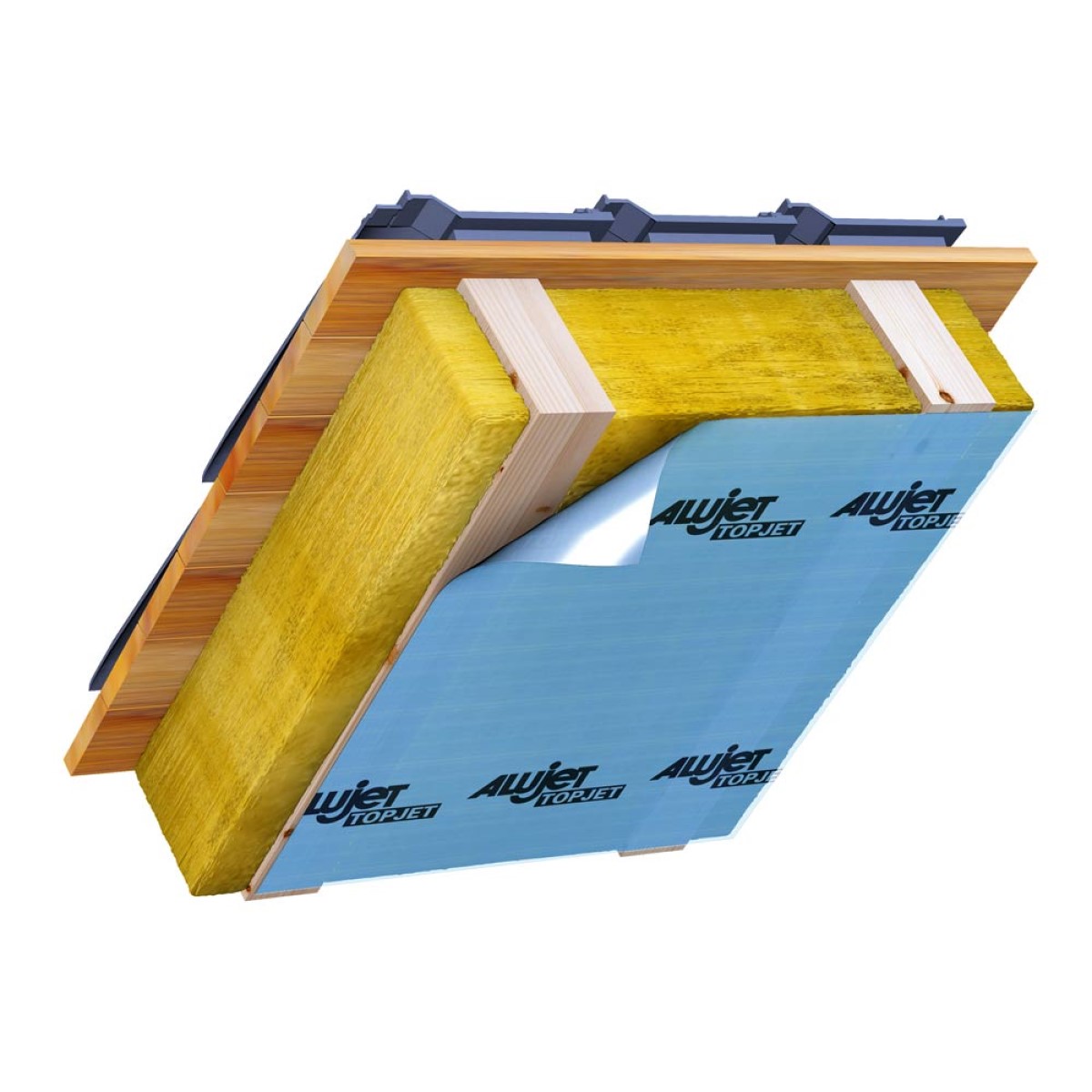 ALUJET Topjet ir trīsslāņu tvaika izolācijas plēve, kas atbilst visām prasībām profesionālai montāžai uz slīpiem un lēzeniem jumtiem. Šīs kompozītplēves ražošanā tiek izmantoti tikai augstas kvalitātes granulas. Šeit netiek izmantoti, piemēram, reģeneratori, lai samazinātu Sd vērtību. Pateicoties īpašai materiālu un ražošanas iespēju kombinācijai, ALUJET Topjet ir jaunās paaudzes PE tvaika izolācijas plēves.