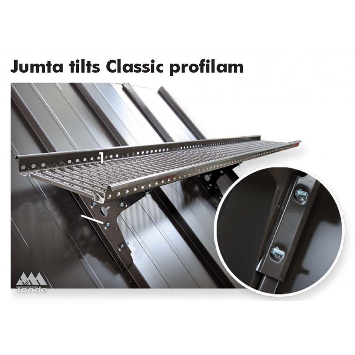 Jumta tilts ir svarīgs drošības un apkopes elements, kas nodrošina ērtu un drošu pārvietošanos pa jumtu. Tie ļauj drošāk piekļūt skursteņiem, ventilācijas sistēmām un citiem jumta elementiem. TOODE jumta tilti ir izgatavoti no izturīgiem materiāliem un tiek piestiprināti ar