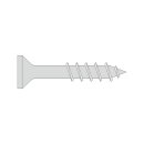 Speciālas SN Brio grīdu plākšņu skrūves ar gremdgalvu un bezvītnes daļu zem galvas, cinkotas 17 un 22 mm garumā.
