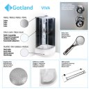 Gotland Viva Masāžas dušas kabīne bez jumta, dziļais paliktnis (45cm), caurspīdīgi stikli, 90x90x195cm