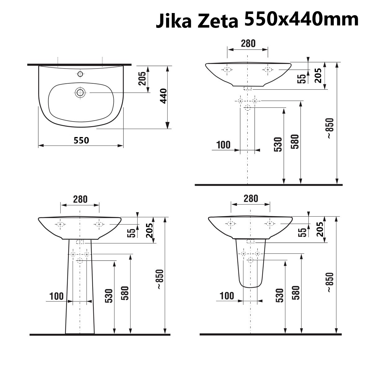 Jika Zeta Vannas istabas izlietne, 550x440mm, balta