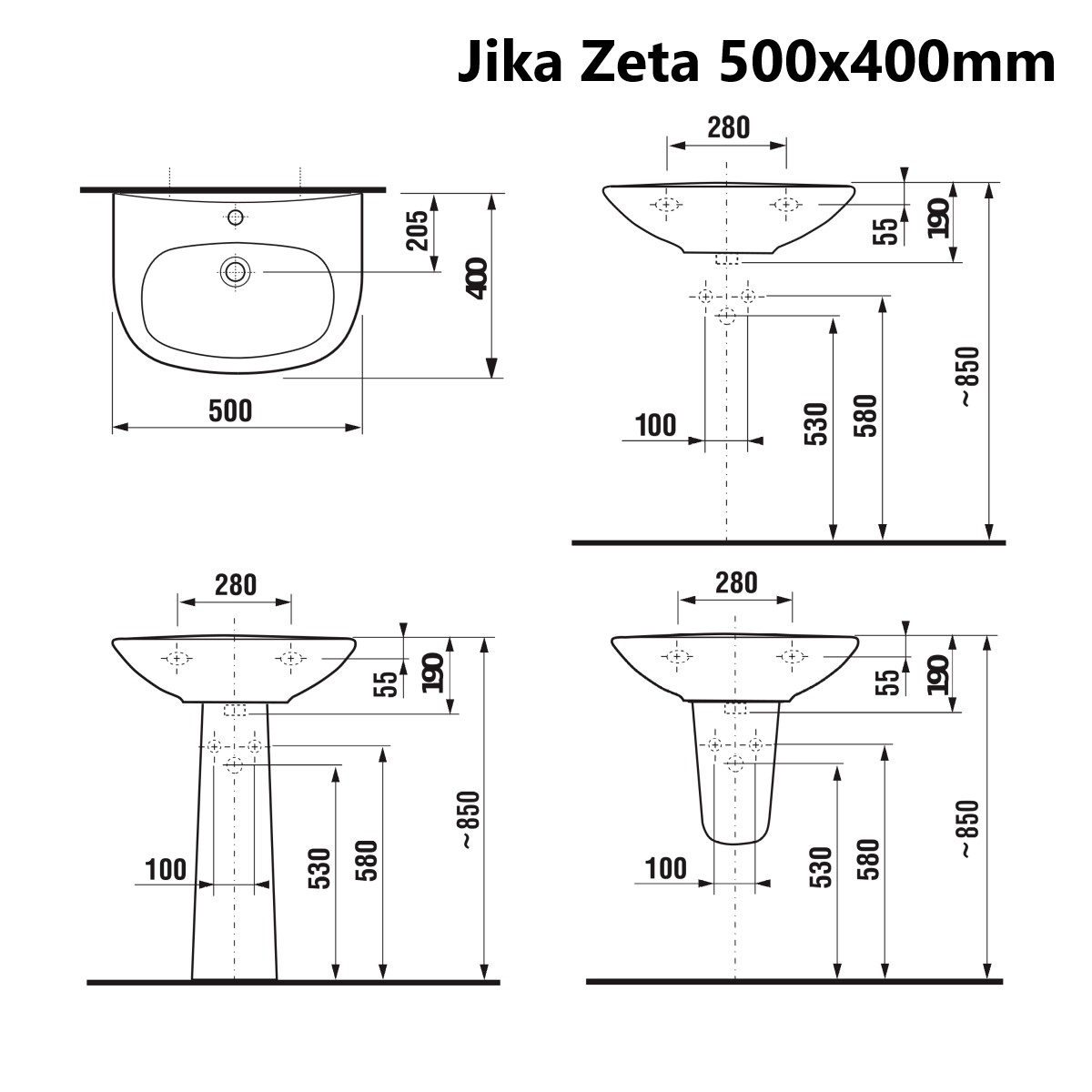 Jika Zeta Vannas istabas izlietne, 500x400mm, balta