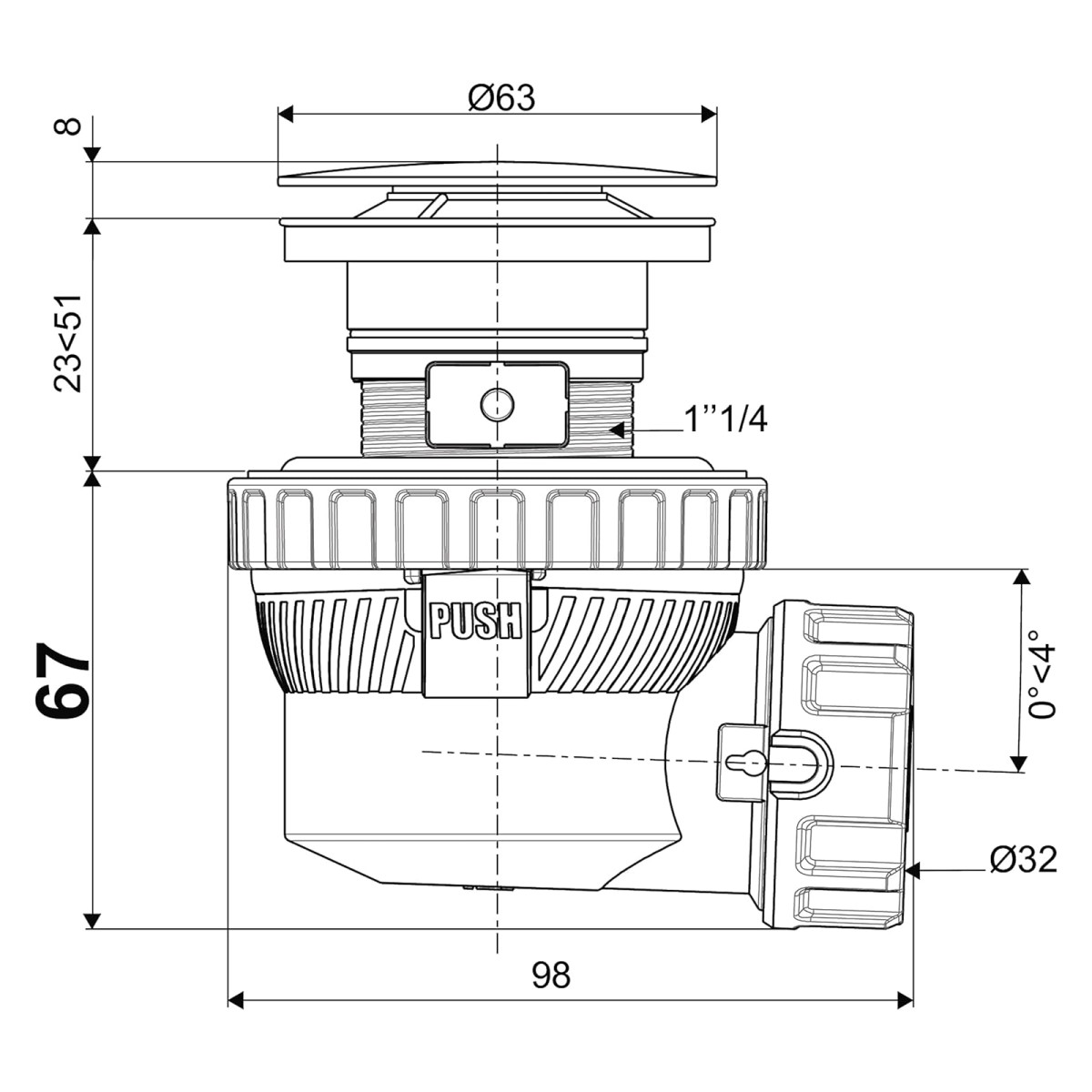 - Mazākais atkritumu un sifonu komplekts tirgū, tikai 67 mm zem izlietnes.