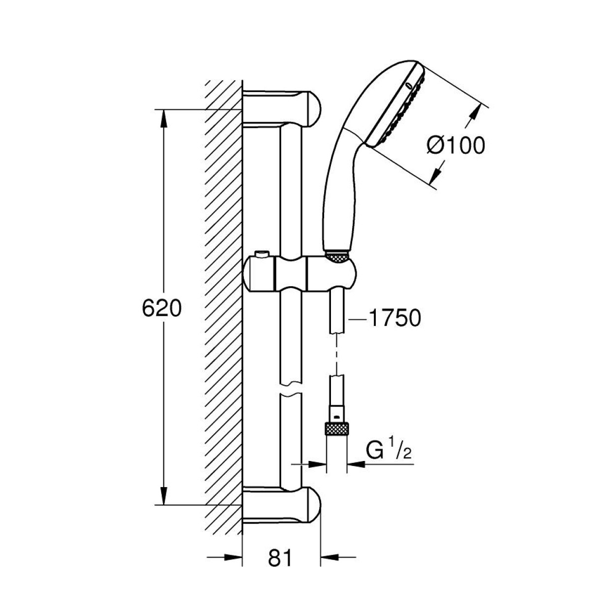 - Dušas stienis ar rokas dušas turētāju, 60cm.