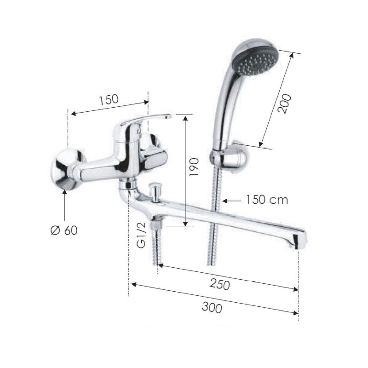 - Vannas/dušas jaucējkrāns ar rokas dušu.