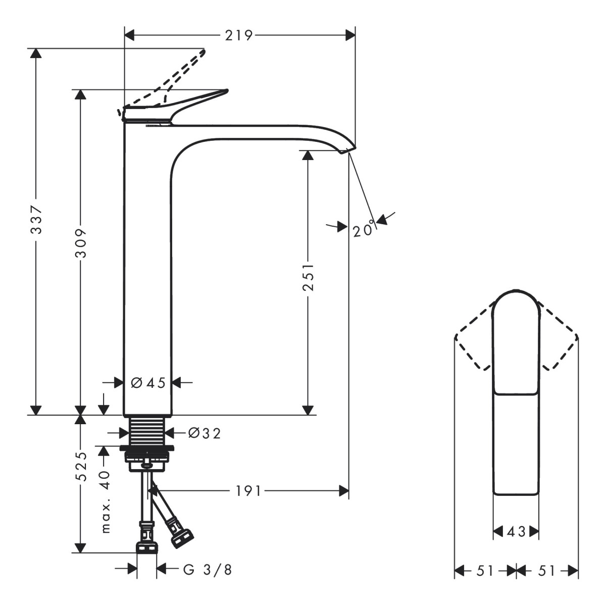 Hansgrohe Vivenis 250 Vannas istabas izlietnes maisītājs: