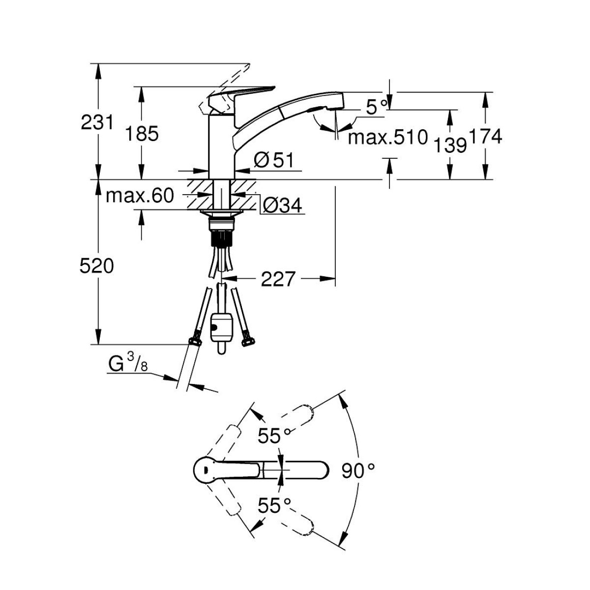 Grohe Start Virtuves izlietnes maisītājs ar izvelkamu dušu:
