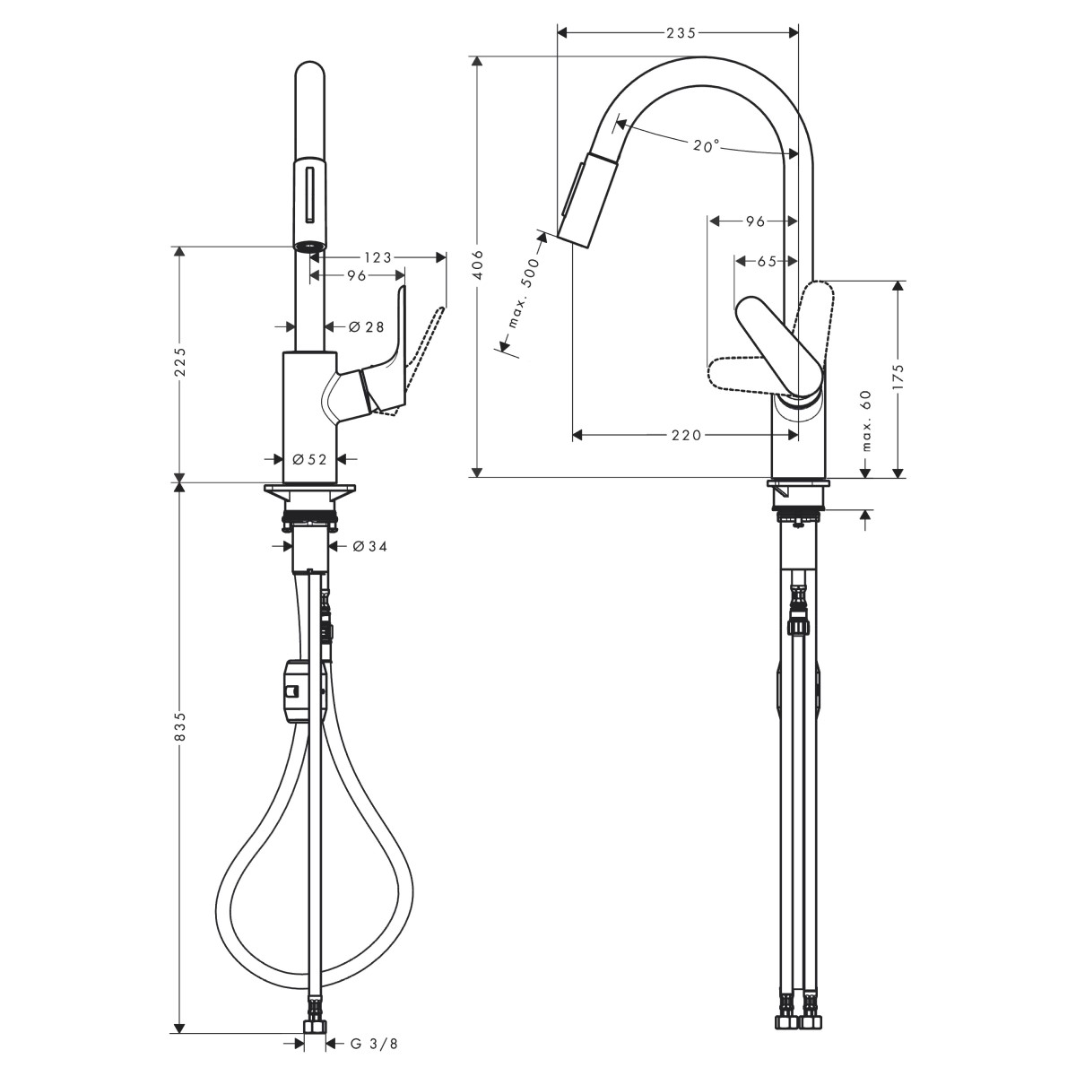 Izvelkamā duša ar 2 režīmiem: Laminārais aerosols, dušas aerosols. Slēdzams dušas aerosols, aerosols atgriežas caur nospiežamu smidzināšanas novirzītāju un smidzinātājs atgriežas automātiski caur roktura aizvēršanu.