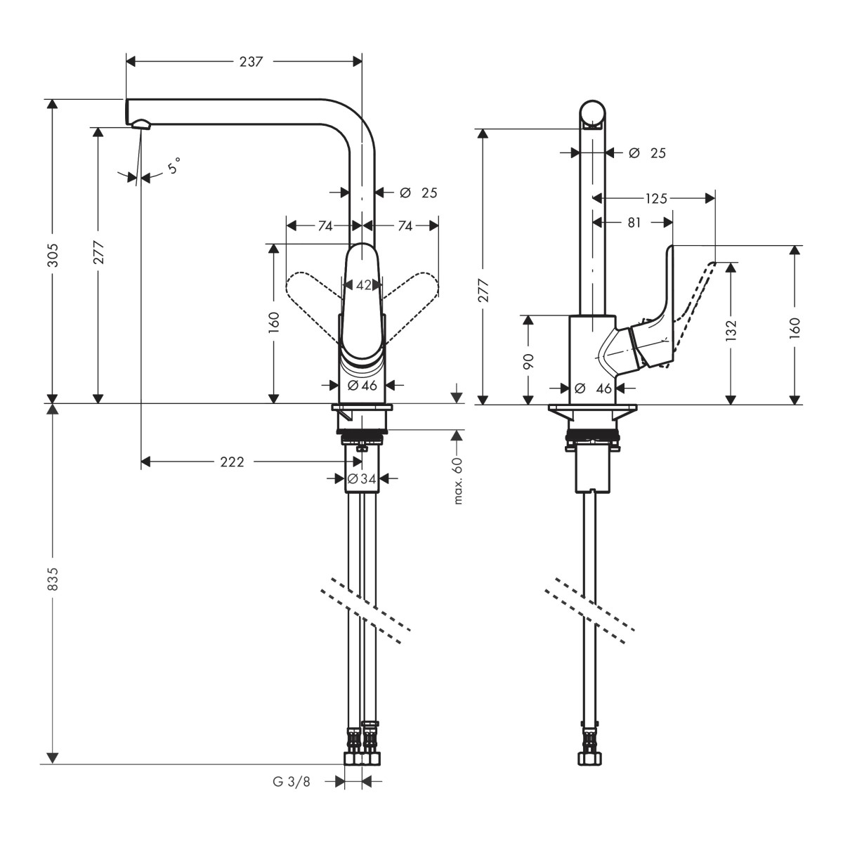 Hansgrohe Focus M41 280 Virtuves izlietnes maisītājs: