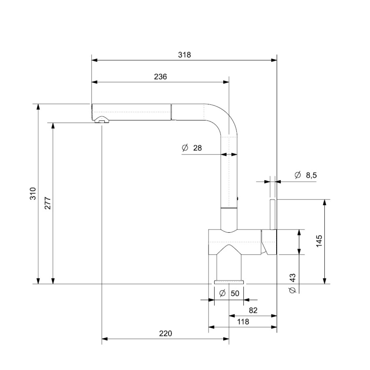 Reginox Cedar Virtuves izlietnes maisītājs ar izvelkamu dušu.