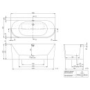 Villeroy & Boch Oberon 2.0 Asimetriska kvarila vanna, brīvstāvoša pie sienas, ar sifonu